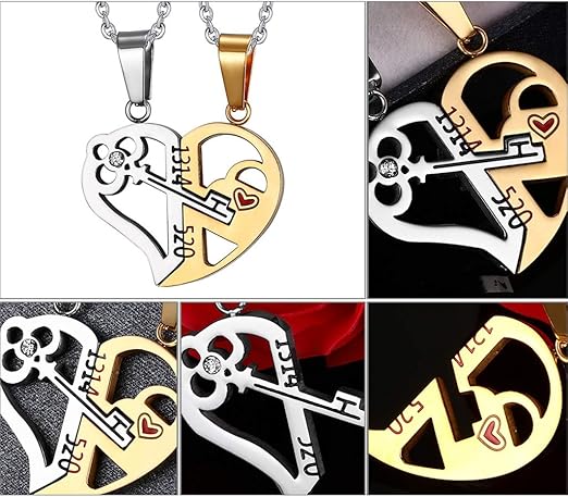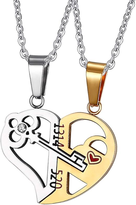 Diseño romántico y simbólico: Este collar presenta un diseño de corazones divididos, con un corazón de llave que encaja perfectamente, simbolizando el amor inquebrantable y la conexión única entre dos personas .Los números 1314 520 grabados en los collares hacen referencia a "Te amaré para siempre", reforzando el mensaje de amor eterno.