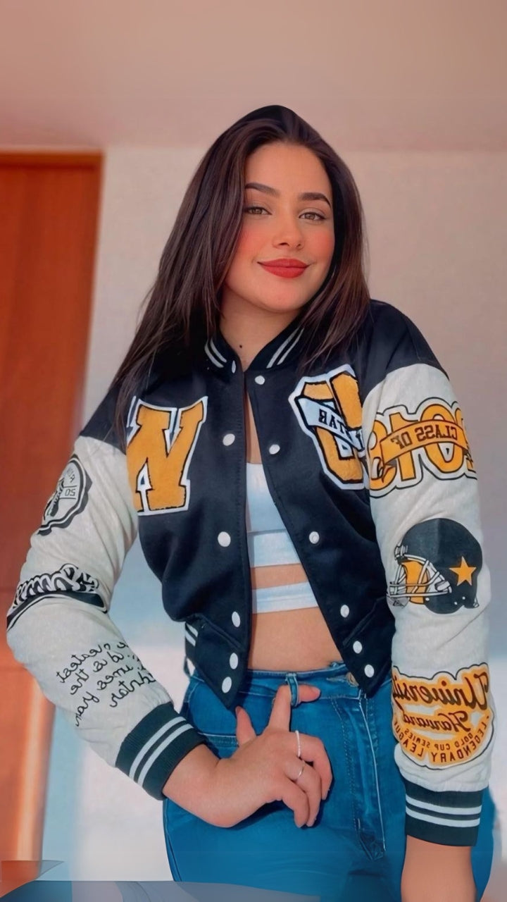 Beisbolera en algodón para mujer, un clásico renovado con detalles elegantes. Confeccionada en algodón con bordados en chenille, combina comodidad y estilo.
