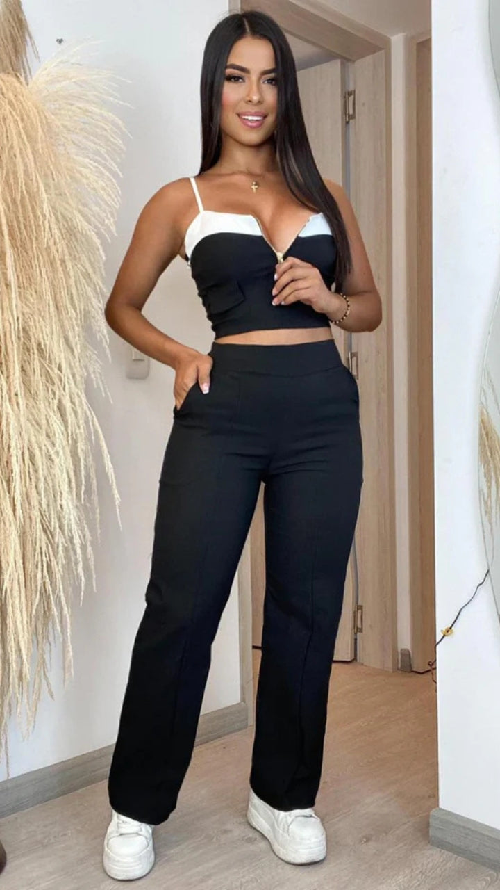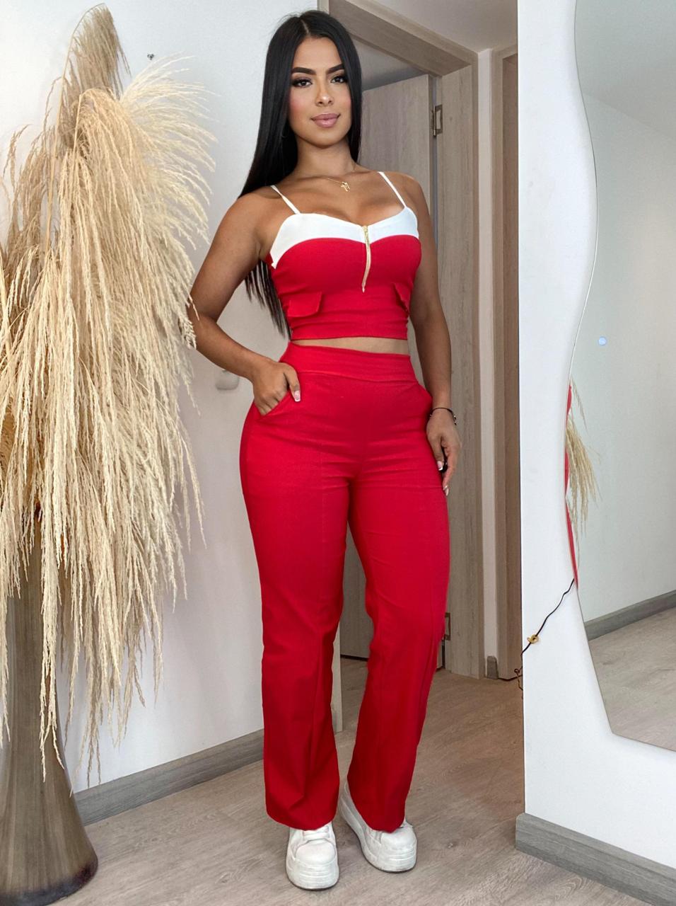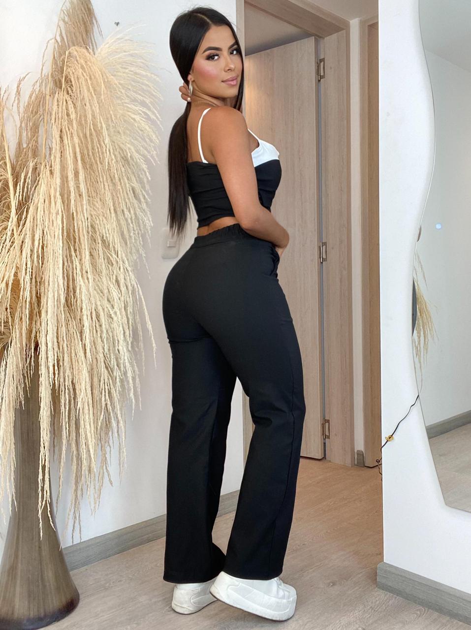 Conjunto femenino 100% colombiano, ideal para un look cómodo y elegante. Está hecho de bengalina, un material que se ajusta perfectamente al cuerpo, brindando confort y estilo.