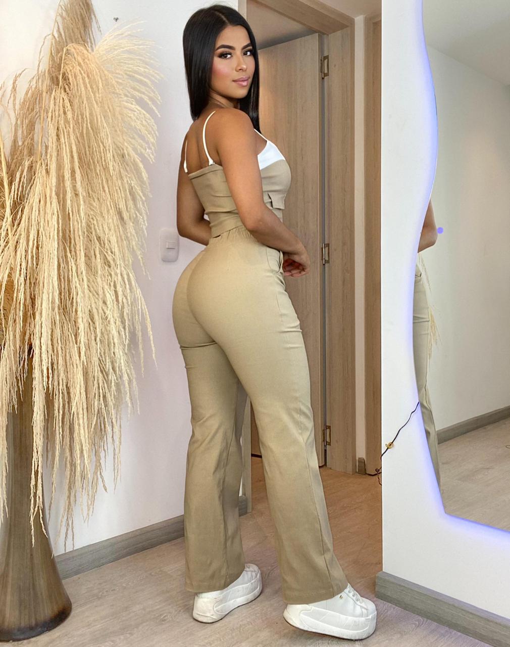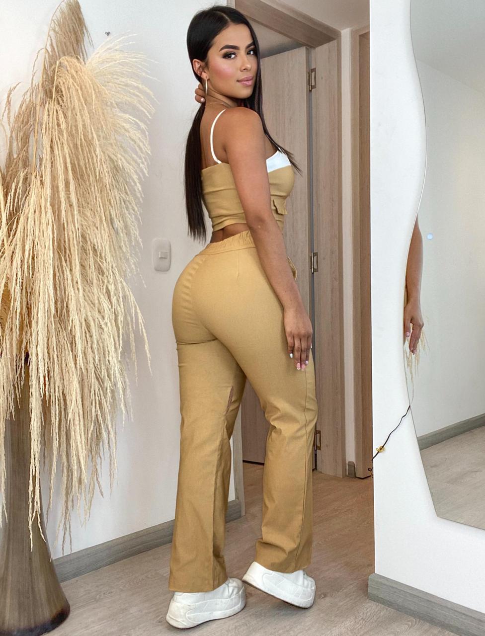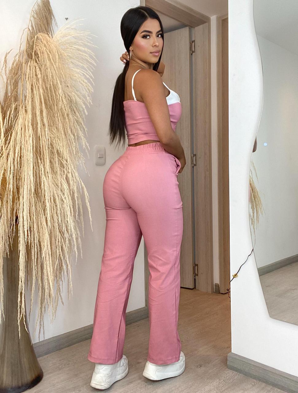 Conjunto femenino 100% colombiano, ideal para un look cómodo y elegante. Está hecho de bengalina, un material que se ajusta perfectamente al cuerpo, brindando confort y estilo.