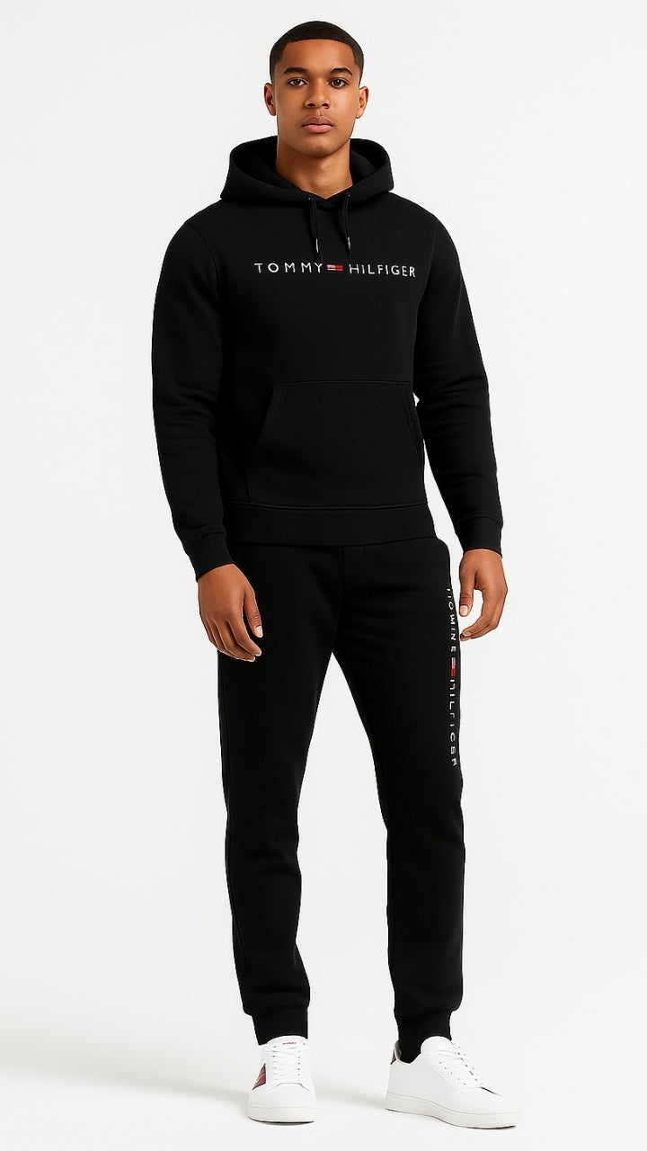 Este Conjunto Deportivo Tommy, en tono negro clásico, es una apuesta segura para quienes valoran la practicidad sin perder el toque moderno.
